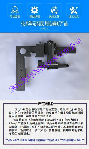 车辆车轮第四种检查器(以下简称为“检查器”)用于测量各种型号车辆车轮踏面圆周磨耗、轮缘厚度、轮缘高度、轮辋厚度、轮辋宽度、轮缘垂直磨耗、踏 面擦伤深度和长度、踏面剥离深度和长度、车轮碾宽等参数。
