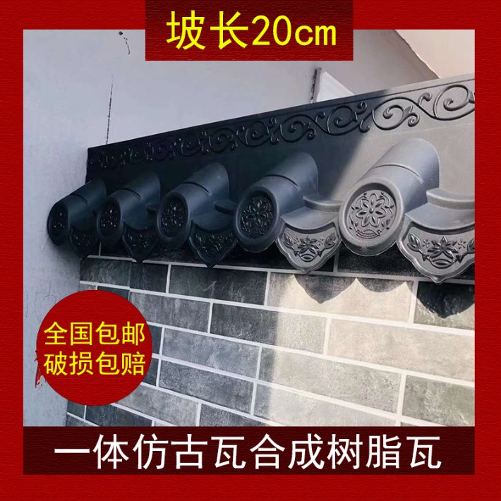 » 20cm仿古瓦树脂瓦一体中式屋檐装饰塑料小青瓦假门头古建围墙琉璃瓦片