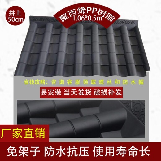 拼上50cm的仿古瓦树脂瓦屋檐装饰塑料瓦中式风格装修瓦PVC瓦围墙瓦