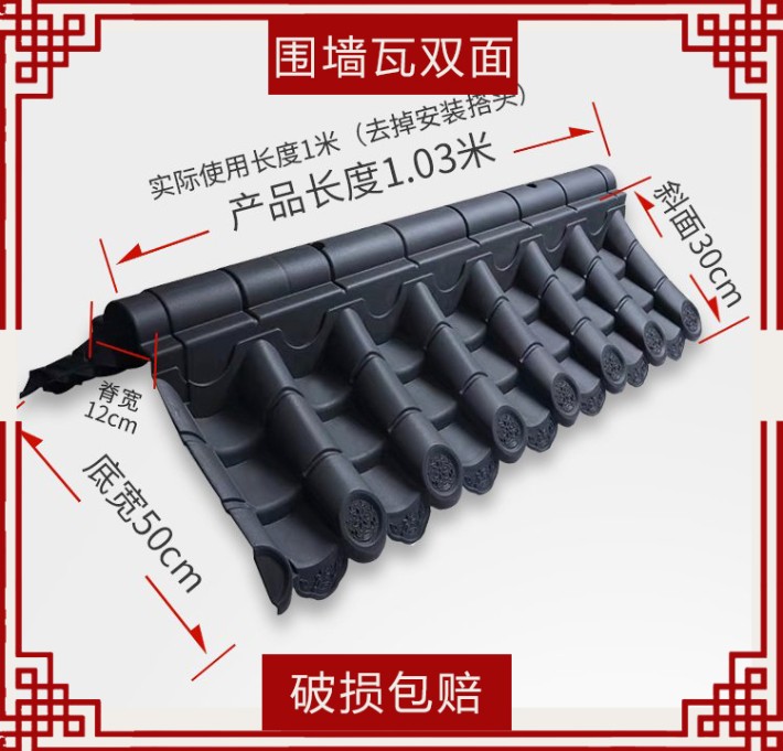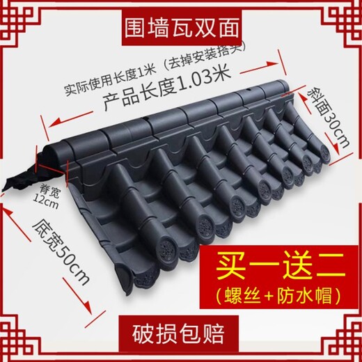 » 围墙瓦双面墙头瓦树脂瓦仿古一体瓦片双面仿古塑料瓦围墙压顶瓦片