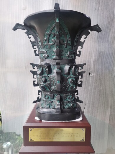 还有一款何尊,仿古感觉更能表现一些,请您看图。仿古青铜何尊,是博古架上,办公桌上,等摆饰纪念礼品