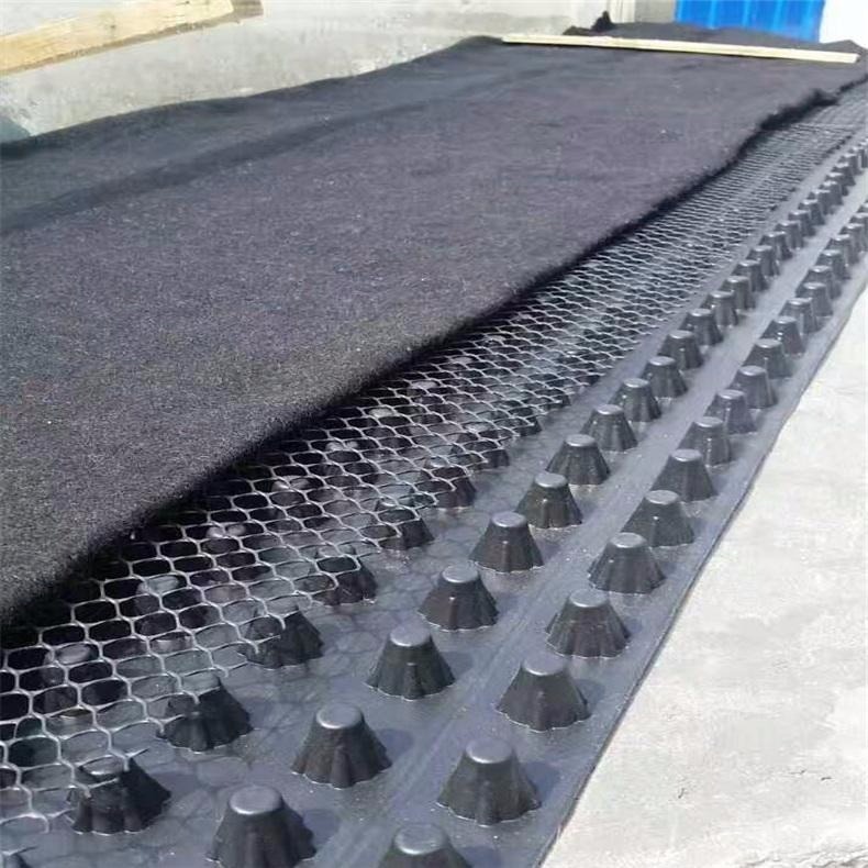 8. 排水板在铺设时边与边右搭接下来1-2支点,也可以两块底板碰齐,上面利用土工布搭接,只要保持没有泥土进入排水板的排水通道就可以,保持排水畅通。