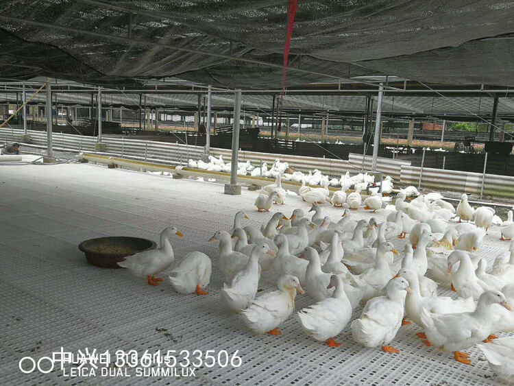 利的漏到地面上。还有育雏的小孔漏粪板,防止小鸭