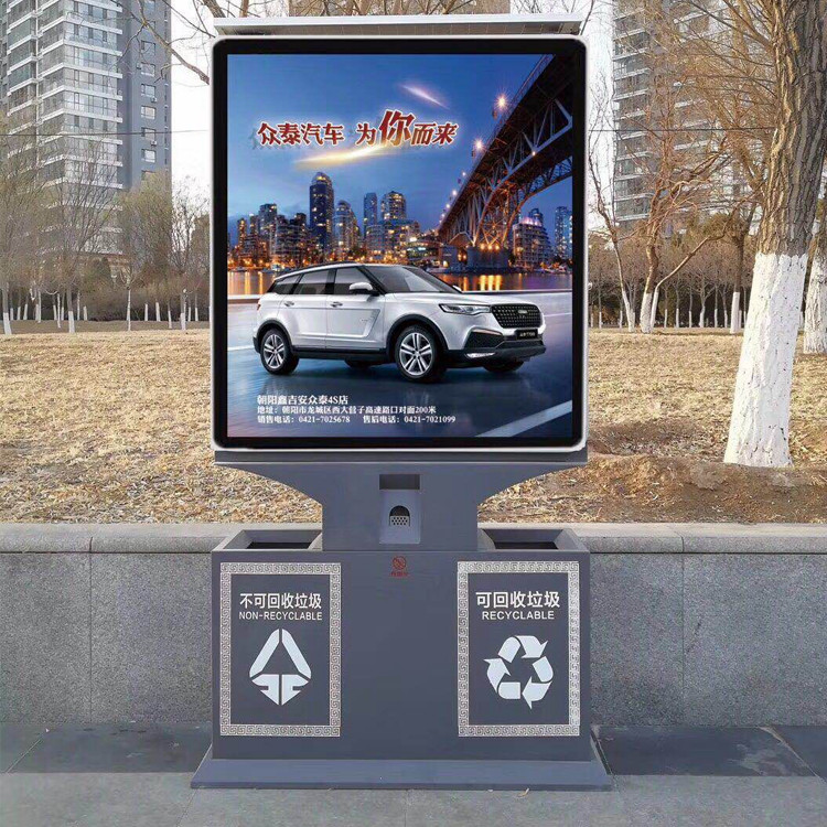 广告垃圾箱是广告灯箱和垃圾箱的结合,具有广告灯箱和垃圾箱灯箱的双重功能。广告垃圾箱是广告灯箱和垃圾箱的结合,具有广告灯箱和垃圾箱灯箱的双重功能。广告垃圾箱,其实质便是垃圾箱。它是广告牌与垃圾箱的结合体,两者又经过了美化设计后组合在一起,形成了能够让人赏心悦目的效果随着城市美化与亮化的推进.