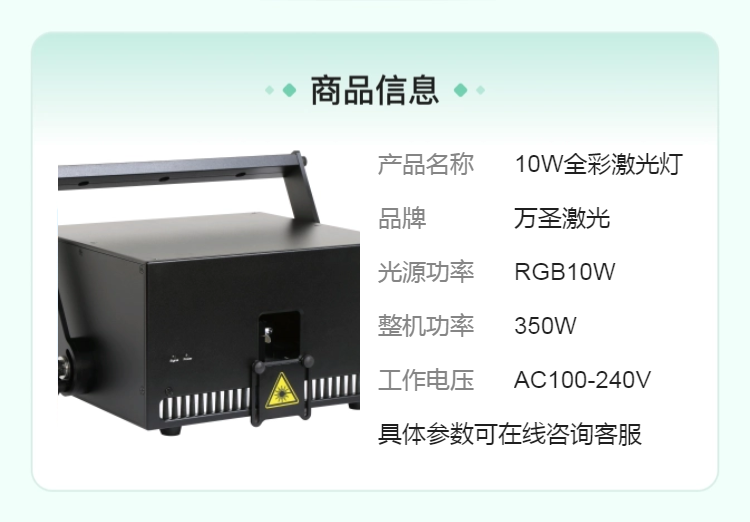 万圣激光RGB10W舞台激光灯投射文字动画光束表演WS-RGB-10W