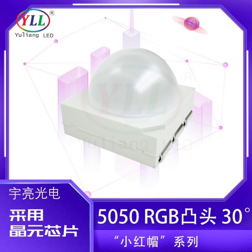深圳宇亮--“小红帽”5050RGB凸头30°贴片LED灯珠,品牌:晶元epistar芯片、科锐CREE芯片封装;小角度,小功率,高亮度,低阻抗,可支持特殊定制。