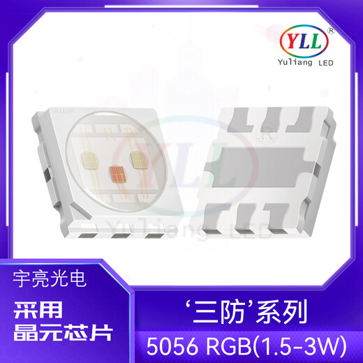 RGB全彩三合一灯珠采用三颗全晶元芯片配套、圆形杯、聚光效果较好