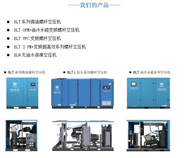 博莱特无油水润滑空压机BLW-75A55KW10立方螺杆压缩机
