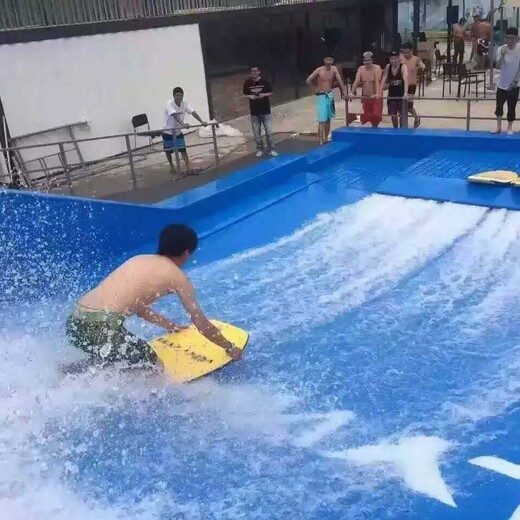 滑板冲浪又称冲浪模拟器,经过一定的加压系统及喷头使水体滑板表面形成一层薄薄均匀的水流,从下至上逆向移动,游客从上往下滑,就像冲向大浪的浪尖,让游客感觉源源不断的冲浪。
