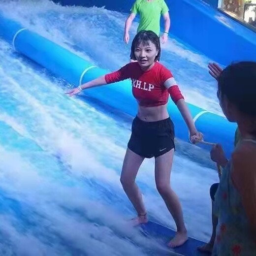 滑板冲浪又称冲浪模拟器,经过一定的加压系统及喷头使水体滑板表面形成一层薄薄均匀的水流,从下至上逆向移动,游客从上往下滑,就像冲向大浪的浪尖,让游客感觉源源不断的冲浪。