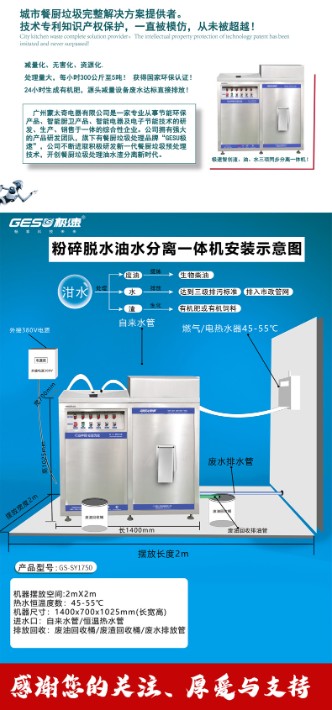 产品型号:GS—SY1750;处理方式:粉碎、油水分离、离心脱水;