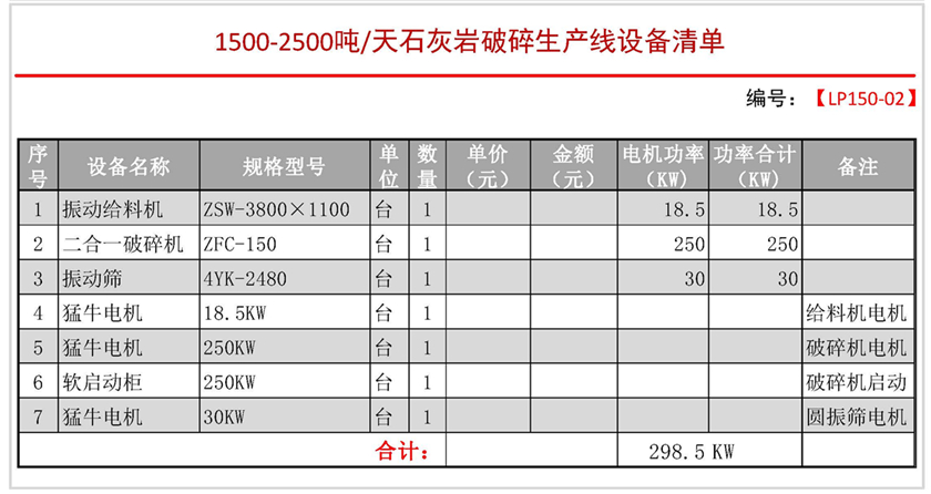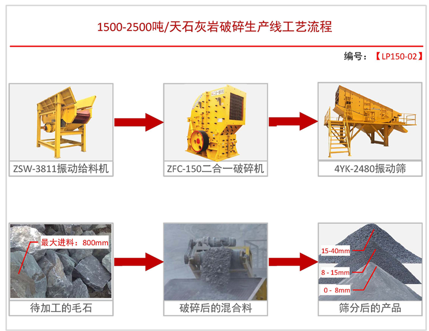 【大进料】:≤800mm 【生产能力】:150-250t/h【装机功率】:298.5KW 【适用物料】:石灰石【出料规格】:(1)0-8mm (2)8-15mm (3)15-40mm【方案优势】:1.投资小2.省电3.能破大料4.配件损耗低 【基础设计】:1.钢架设计(优选) 2.土建基础