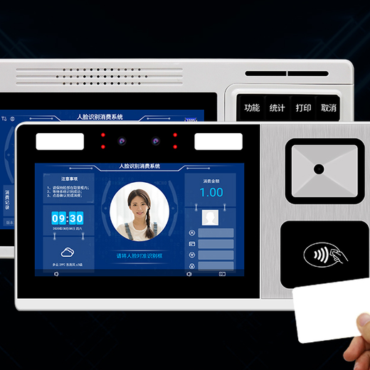 营业统计:消费机上可以统计当天的营业额,刷脸、、、云卡、IC卡收款的分类营业额(仅支持联网查询)。