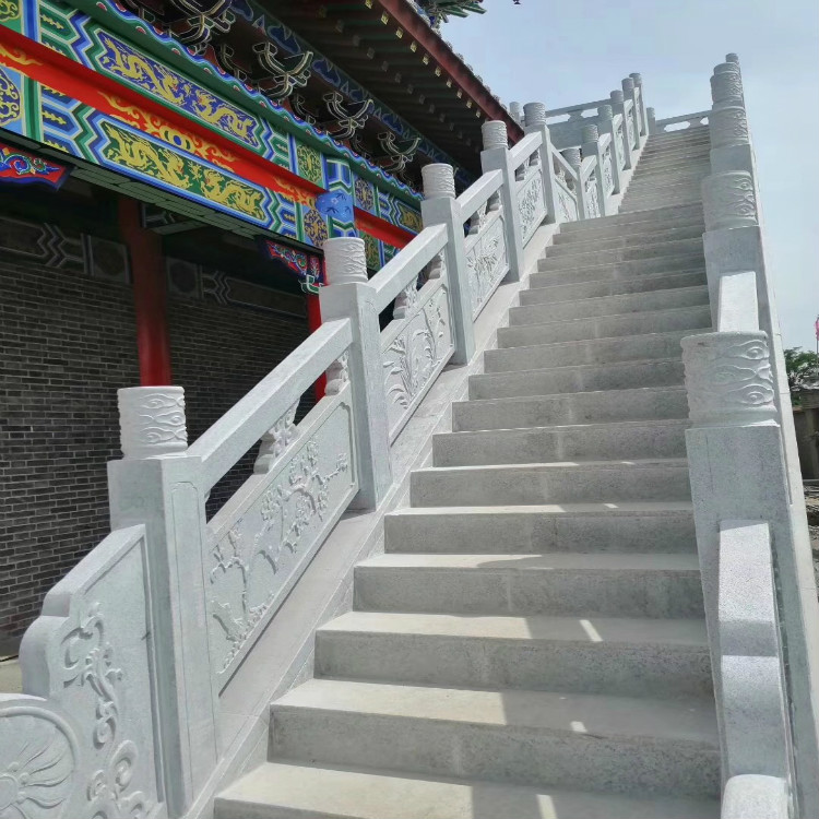 浮雕相对的复杂一些,价格相应的也高一些。多用于景区,公园,庭院等一些的场所,用料和做工都相对讲究一些。透雕的青石栏杆用途很有限,一般是用于寺庙.景区等,用料和做工都不计成本,价格较贵。