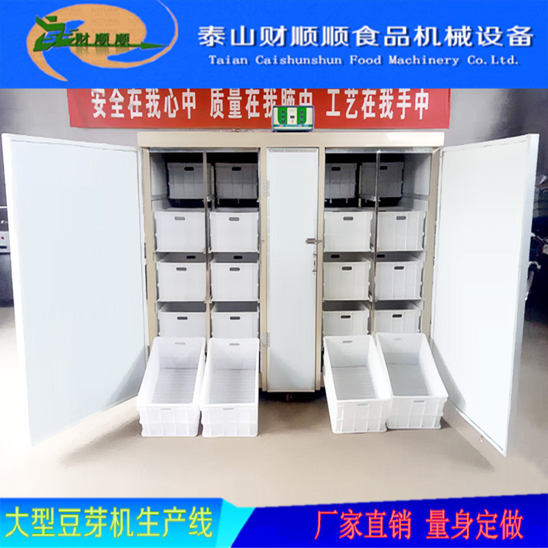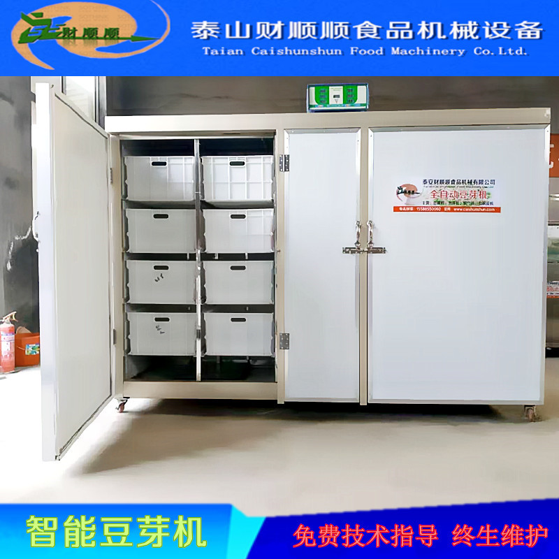 智能豆芽机具有功能全、控温准、容量大、产量高、耐腐蚀、不宜损坏、操作维修简单方便、不用专人看管等优点。性能、寿命各方面均优于同类产品。财顺顺智能豆芽机适用于大中型户、、食堂、超市等单位的豆芽生产,以及远洋船舶、油田钻井、豆芽批发商户。