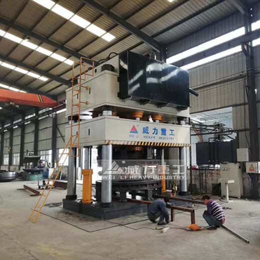 山东威力重工生产的定制大型油罐封头拉伸机采用四柱液压机结构简单经济实用,它是由上横梁、滑块、工作台,立柱、主缸以及液压系统组成。它的显著特点是工作空间宽敞,整机结构简单,工艺性好。机身采用上横梁、活动横梁,工作台和四根立柱组成,工作缸安装在上横梁,活动横梁和工作缸的活塞连接,以立柱为导向做上下运动,并传递工作缸的内产生力量,对于工件进行压力加工。