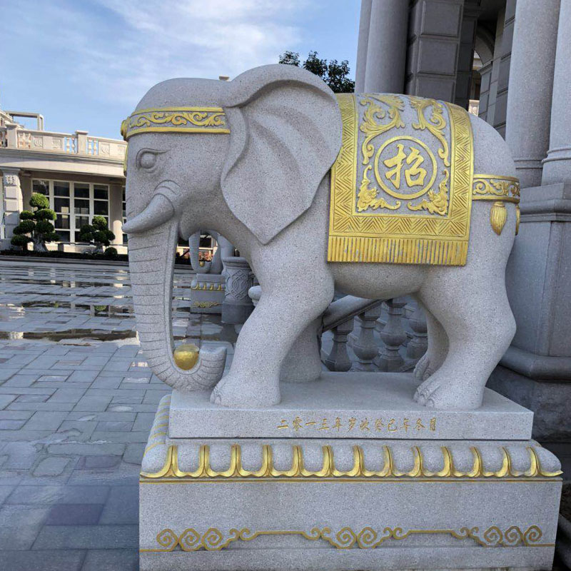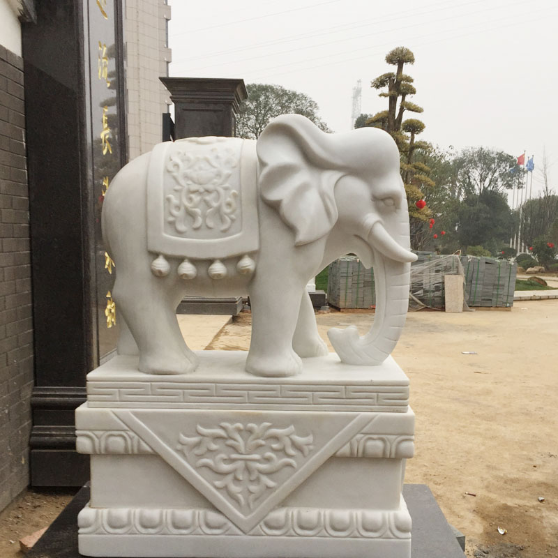 琳琅满目的大象石雕是近些年来,备受欢迎的吉祥神兽石雕工艺品。形态各异的石雕大象总是被人们摆放在各种场所门口,在车水马龙银行酒店门口、静谧幽深的深山古刹山门前、人头攒动的公园景区门口,甚至连教书育人的学校门口也喜欢摆放一对石雕大象。这不仅体现了人们对大象石雕造型的偏爱,更是对美好生活的期许和憧憬的表现。憨态可掬的石雕大象,因其蕴含吉祥美好的寓意,而倍受人们的推崇和追捧。在生活中,我们总能看到形态各异的石雕大象造型,有的石雕大象造型调皮可爱,灵活的象鼻卷曲着往上翘着,好像是拿到些什么似的;这样的石雕大象造型被人们称为低鼻象。