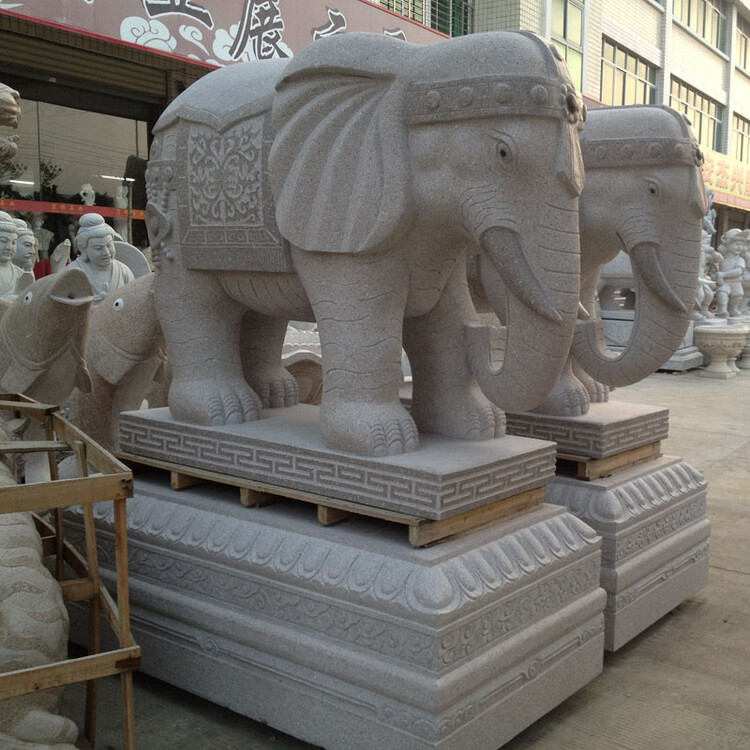 石雕大象顾名思义就是用各种天然石材,根据动物大象的外形特征和生活习性,采用多种特殊的雕刻工艺制作而成的。用于雕刻石雕大象的石材种类丰富多彩,常用的有花岗岩、汉白玉、青石和大理石等。多彩缤纷的石材原料,让石雕大象的外观形态呈现出琳琅满目的视觉效果。其次,石雕大象所采用的雕刻手法千变万化,常用的有圆雕、浮雕和镂雕等。圆雕工艺是动物石雕常用的制作手法,圆雕工艺可以让石雕大象具有立体的思维空间,浮雕工艺一般用于细节雕刻,让石雕大象的造型语言能呈现出强烈的明暗对比,展现出更加生动的光影魅力。