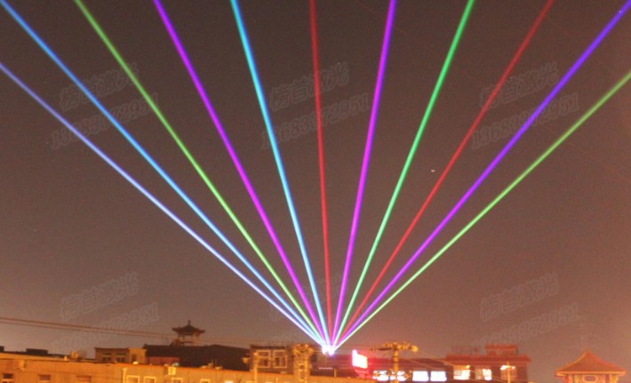 | 全彩激光,采用高速度振镜扫描技术,图案具断笔、频闪、旋转、翻滚、移动、拉伸、缩放、渐绘、速度等效果,具图案大小调节功能,内置256个光束及动画图案,可做光束动画表演、激光广告、激光投影 |