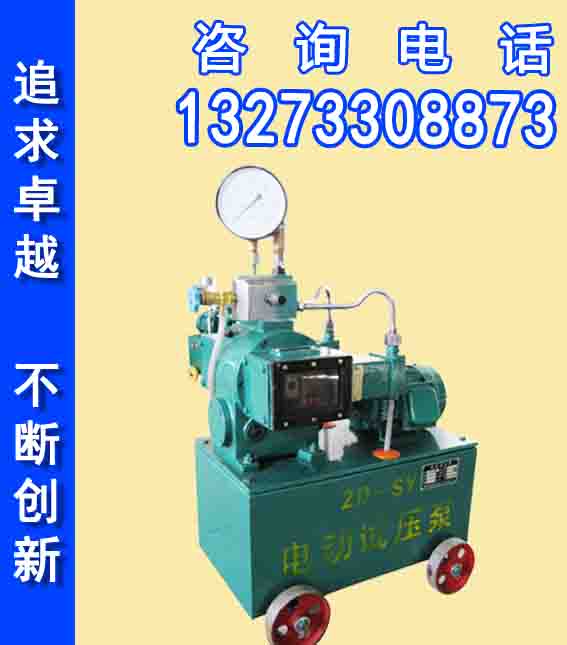 我厂研制生产的电动试压泵,具有流量大、压力高、操作性能好、维修方便等特点,而且使用范围广、配套性强、操作简单,具有自动保压和手动升压、卸荷等功能。是各类压力容器、管道、锅炉、钢瓶、阀门、压力容器、消防器材作实验室和水压试验中获得高压液体的理想设备。