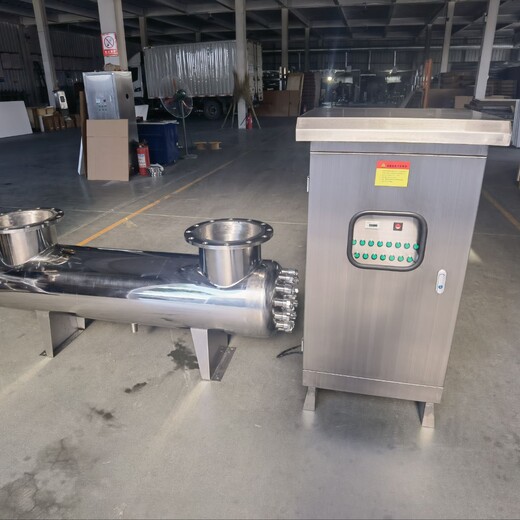 紫外线消毒器集光学、微生物学、机械、化学、电子、流体力学等综合科学为一体。采用特殊设计的率、高强度和命的紫外UV-C光发生装置产生的强紫外UV-C光照射流水。当水中的细菌、病毒等受到一定剂量的紫外UV-C光(波长253.7nm)照射后。其细胞DNA及结构被破坏,细胞再生无法进行,从而达到水的消毒和净化。而波长185nm的谱线还可以分解水中的有机物分子,产生氢基自由基并将水中有机物分子氧化为二氧化碳,达到去除TOC的目的。