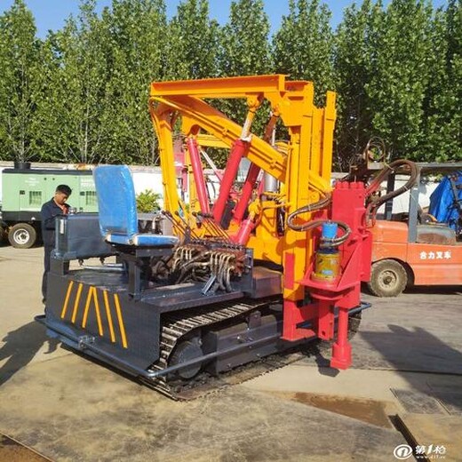 打桩机由桩锤、桩架及附属设备等组成。桩锤依附在桩架前部两根平行的竖直导杆(俗称龙门)之间,用提升吊钩吊升。桩架为一钢结构塔架,在其后部设有卷扬机,用以起吊桩和桩锤。桩架前面有两根导杆组成的导向架,用以控制打桩方向,使桩按照设计方位准确地贯入地层。打桩机的基本技术参数是冲击部分重量、冲击动能和冲击频率。桩锤按运动的动力来源可分为落锤、汽锤、柴油锤、液压锤等。