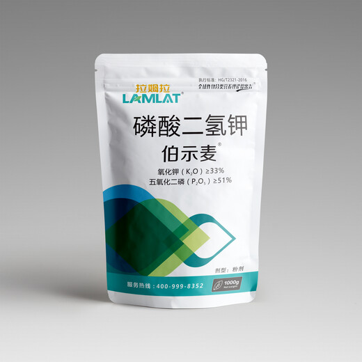 产品特点1.本品由拉姆拉特种肥料有限公司技术研发,为白色粉末状,相比普通磷酸二氢钾(晶体),溶解更快,纯度更高。2.本品利用工艺生产,PH值稳定,吸收利用率高。3、促使机体细胞的再生,增强细胞代谢活性,对药害、冻害、涝害、旱害有很好的改善作用。4.能调节作物生长,明显提高作物品质,提早上色,改善作物品质和延长保鲜期。5.使用方便:可与多数农药、植物调节剂混合应用。