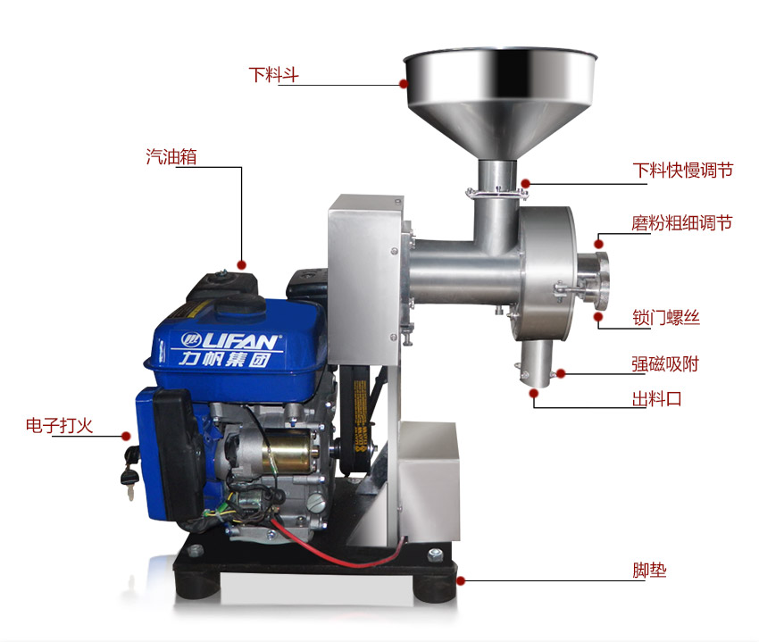 (4)进料快慢和出料粗细均可调节。