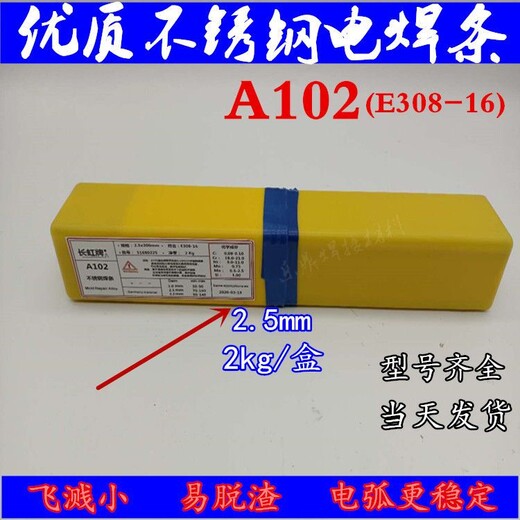说明:A102主要成分是18Cr-8Ni,是应用广泛奥氏体不锈钢焊接材料。可采用交直流电源,全位置焊接。焊接作业性优良--电弧稳定、成型美观、波纹细腻、飞溅极少、脱渣容易;药皮耐火性良好、熔敷金属的机械性能稳定、X-Ray合格率高。