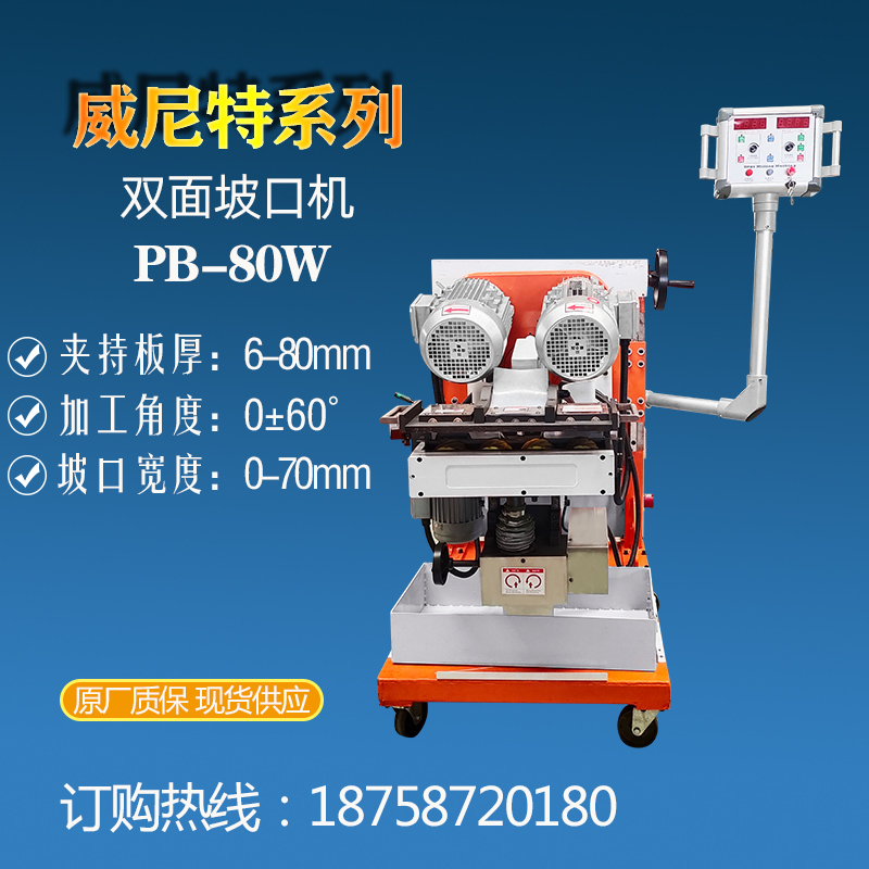 PB-80W型自动平板铣边机大加工坡口宽度达到70mm,夹持板厚再6-80mm,是一款具有体积小、重量轻、方便移动、操作简单等特点 的铣边机,适合厚板的坡口及铣边作业,其加工速度和铣床相比并不逊色,此外该型号的铣边机配备了常用的数控刀片,让客户使用成本更加低廉。