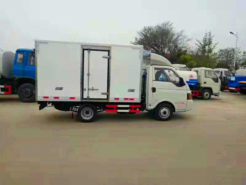 江淮康铃X5冷藏车:轴距2850,柳机1.5L发动机,后双胎,原厂空调,标配电动门窗,中控锁,方向助力,ABS,轿车化内饰。