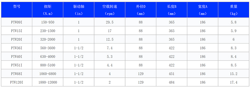 ◆ 7-叶片式气动马达,,使扳手可持续输出无冲击扭矩;