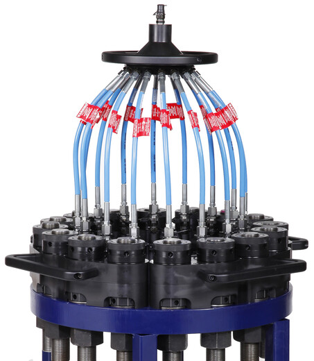 全液压操作:拉伸系统闩紧、加压和活塞回位。