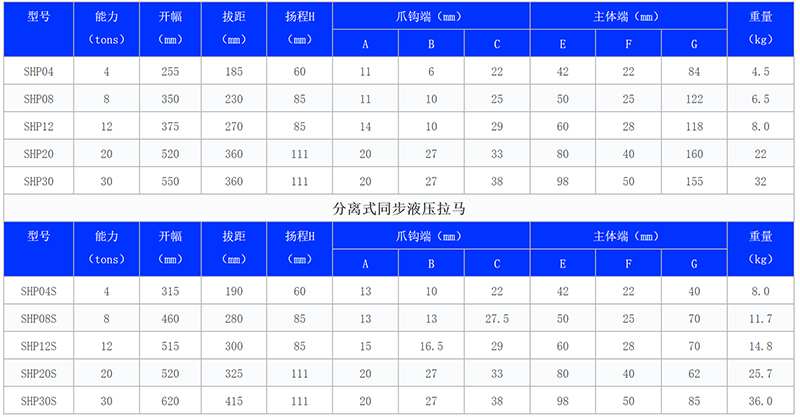 ◆ 操作出力,有自4 Ton 到30 Ton,可供选择。