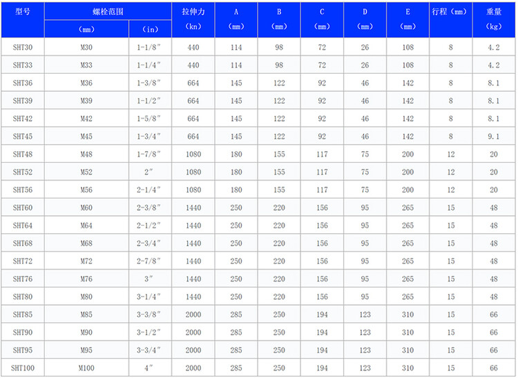 弹簧自动复位,活塞过行程保护,当活塞达到大行程时,将可见一根红色警示线,拉伸器内部的一个简单的机械失效装置将避免液压油溅伤作业人员;