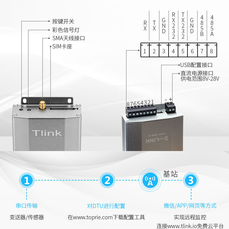 GPRSDTU无线模块485串口转GPRS物联网关无线模块转以太网模拟量