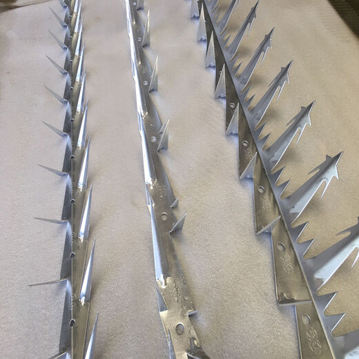 材质 1-2mm厚的热镀锌板、不锈钢304板。防腐方式:热镀锌、喷塑、喷漆。刺长:60mm-163mm。基本长度:1.25m。其他长度可根据客户需要定做。