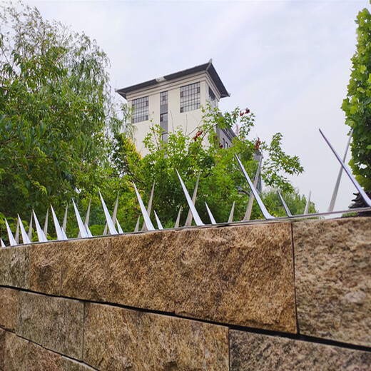 围墙刺钉,墙头刺钉和外墙刺钉制作与安装方法:本产品用热镀锌冷压板,经过特殊模具冲压而成,一次成型美观安全!用膨胀螺丝或自攻螺丝固定在墙头或者金属护栏上,安装简单方便,成本低,安全防护好,外观优美!