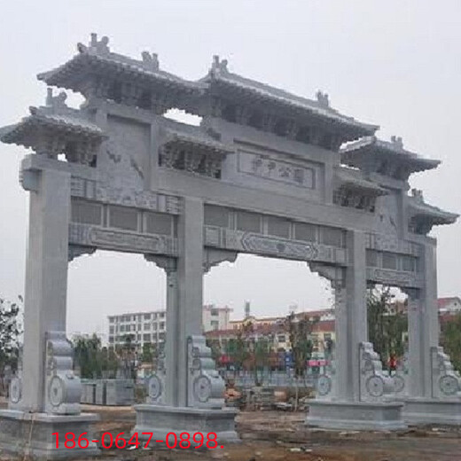 祠堂石牌坊大门怎么设计制作呢,从历史现存的祠堂大门和宗庙上来看,过去的宗祠石牌坊大部分建设得十分宏伟壮观大气。现在因为地方的限制,所以现在设计的祠堂石牌坊大部分为主,样式上有单门牌坊和三门牌坊的款式居多。