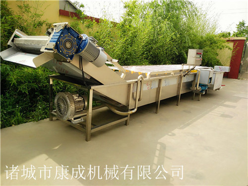 西安沙棘果清洗机 喷淋式黄桃清洗机电机采用摆线减速电机,运行平稳,故障率低,速度可调。在设计结构上采用内胆式构造,便于杂质的清洗,设备的清洁,符合食品安全卫生标准,并配备强压风机跟喷淋,在水池中产生大量密集气泡,使产品进行翻滚搓洗,高压喷淋的冲击清洗,模拟人工清洗,加强清洗性能。是以高压风机风力或水泵的压力使水产生强烈搅拌运动,使物料在水中翻滚,利用毛辊转动及高压喷淋相互结合,从而达到清洗的效果。西安沙棘果清洗机 喷淋式黄桃清洗机结构特征与工作原理:该机由机架、水箱、风机(水泵)、循环冲洗水泵、传动部分等几部分组成,气泡清洗机工作时由于水中风力(压力)的存在,果蔬在水中剧烈翻滚搅动,清洗水经过过滤后,由循环冲洗泵加压至进料口喷管回冲,喷管方向可调,物料被喷管喷出的高压水得以再次冲洗,并朝着出口方向漂移,出口处置至刮板提升机,刮板提升机的速度可调(调节刮板提升机速度到所需的生产能力),将冲来的果蔬送至下道工序(可根据用户要求在出口刮板提升机上加喷淋管,气泡清洗机进一步进行喷洗)。也可根据用户不同的物料,加工不同的提升结构。