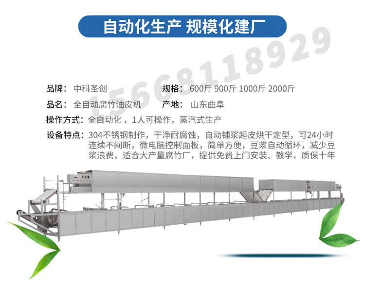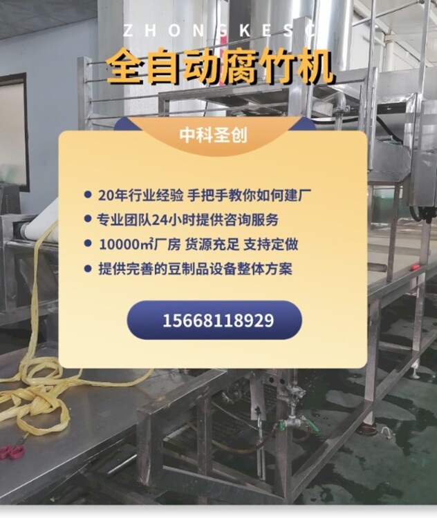 全自动腐竹机生产厂家,厂家各个型号款式的腐竹机都有,不管是刚开始做,产量小,投资小的半自动腐竹机设备,还是搞大量批发,想要省人工,省成本的全自动腐竹机,中科圣创为用户提供生产线服务,更可以为用户提供技术上的支持,厂房规划设计等。不管您是来自哪里的朋友,我们为您提供来厂家看现场操作演示,购买设备后去您家里安装服务,老师一对一指导教学,保障每一位购买的朋友都能够安心放心的使用。