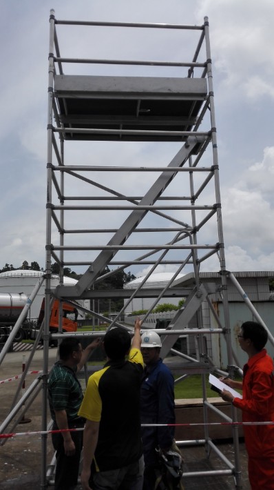 l 45度斜爬梯,对角支撑脚手架,让整个脚手架结构更稳固,增加安全性能。