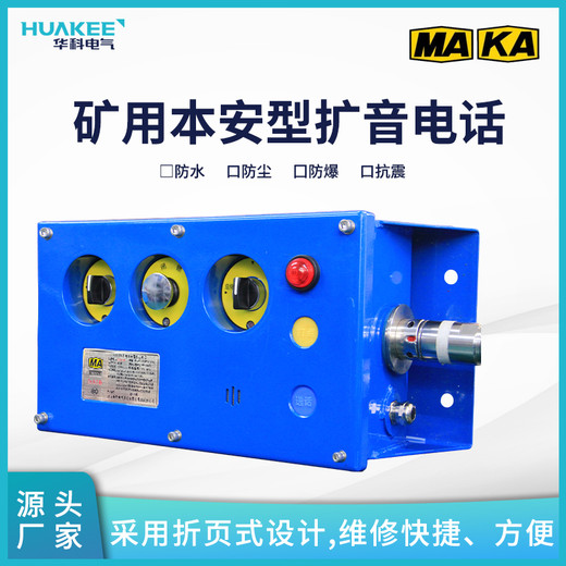 KTK18A矿用本安型扩音电话,外売売体和上盖之间采用折页式设计,维修快捷、方便;内置蓄电池组,在系统停电的情况下仍可通话;两端采用不锈钢快速插接方式,使于安装和维护;扩音电话安装在转载机头和运输机头可实现远程就地启停。