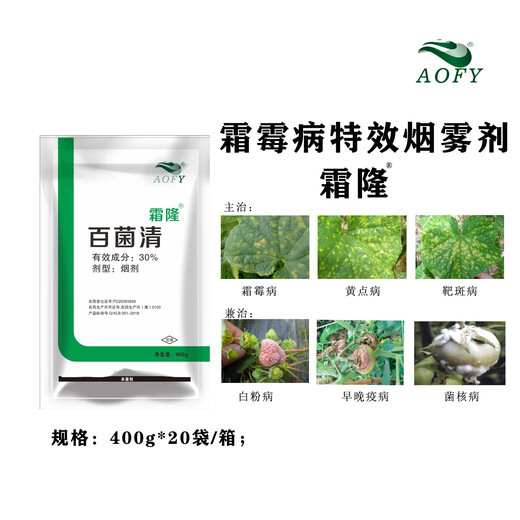 奥丰源30%百菌清烟熏剂,主治霜霉黄点靶斑病
