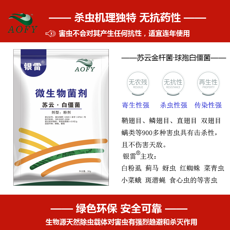 奥丰源银雷微生物杀虫剂苏云金杆菌球孢白僵菌