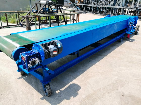 可移动式皮带输送机是一种工效高,使用,机动性好的连续输送装卸设备。主要用于装卸地点经常变更动的场所,如:港口、码头、车站、、仓库、建筑工地、沙石料场、农场等,用来短途运输及装卸散料或单件重量100公斤以下的成件物品。DY型移动式胶带输送机分为可升降型及不可升降型两大类,输送带的运行靠电动滚筒驱动,整机的升降与运行均为非机动。