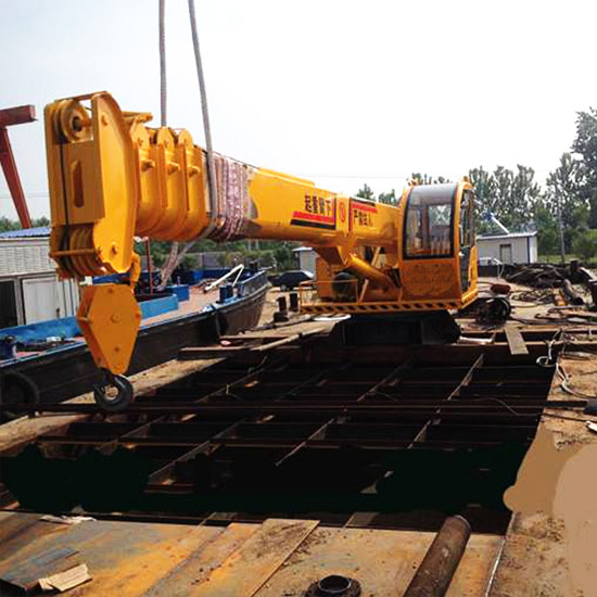 船吊的选购时根据客户使用环境的吊重和船体结合总结出来的,吊取的货物重量是多大,吊取的距离范围是多少,船体的甲板多长多宽,船体自重多少等等元素来结算船吊的吨位。
