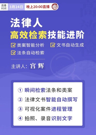 类案智能分析、文书自动生成、法条自动检索,今晚20:00 v xin“法律名家讲堂”公众号免费直播