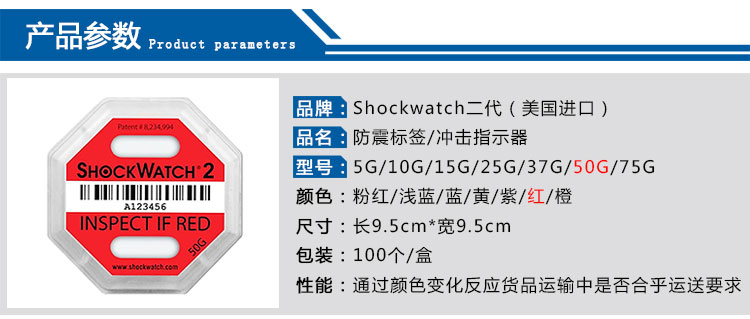 shockwatch2防震防倾斜标签防冲击标签防震动标签运输不变色