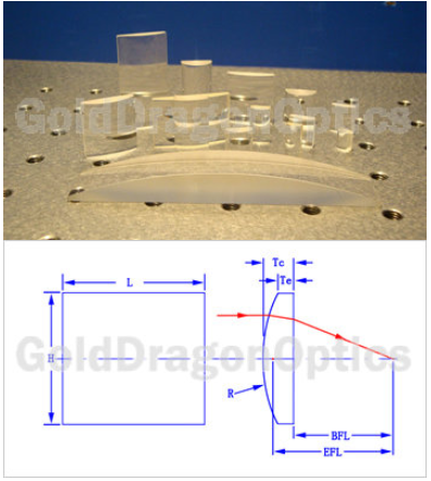 K9平凸柱面透镜能把一个发光点发的光变成一条线,通过两个平凸透镜彼此垂直或是相交方向放置,就能产生面光,总的焦距就是各焦距的和。